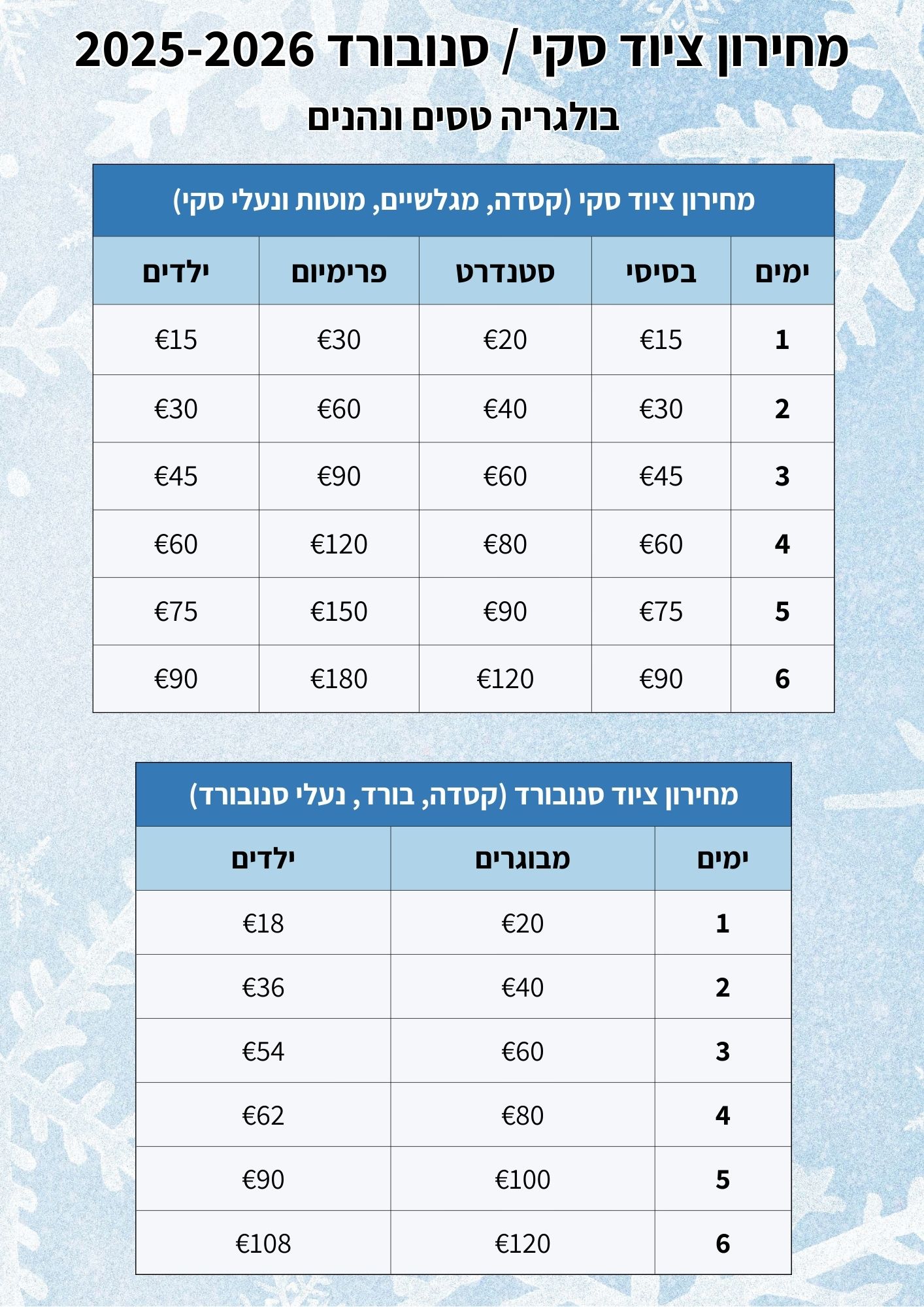 נציג ווטסאפ בנסקומחירון ציוד סקי בבנסקו 2025-2026